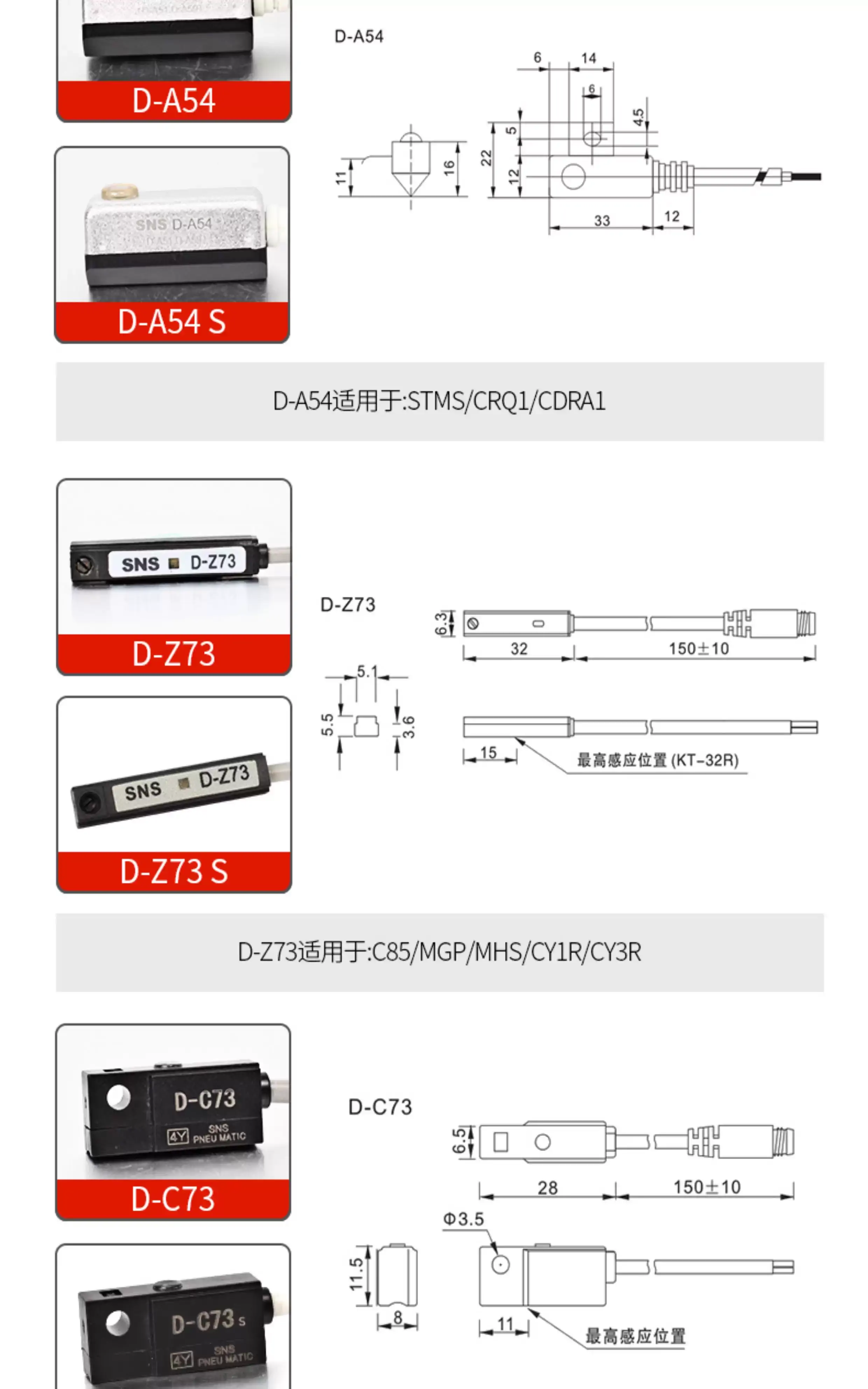 SNFG磁性开关SNS CS1-F U J G M S气缸接近传感D-A93磁性感应配件