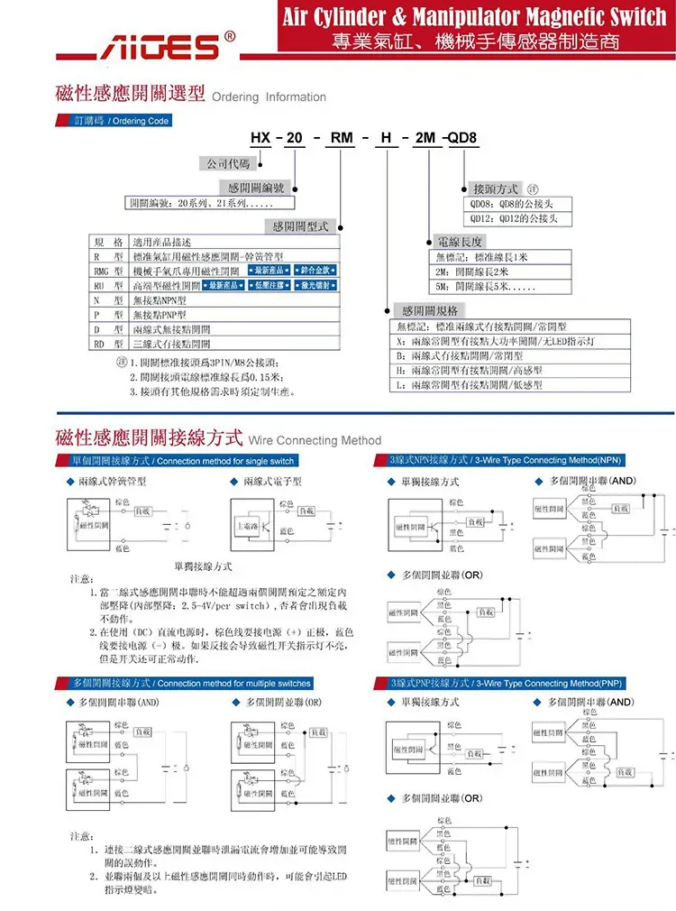 AIGES磁性开关HX-20系列有:HX-20R,HX-20RD,HX-20N,HX-20P;
