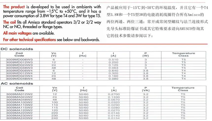 AMISCO电磁阀线圈 EVI 7/9 6VA/5VA/6.5W/3W AC220V DC24V