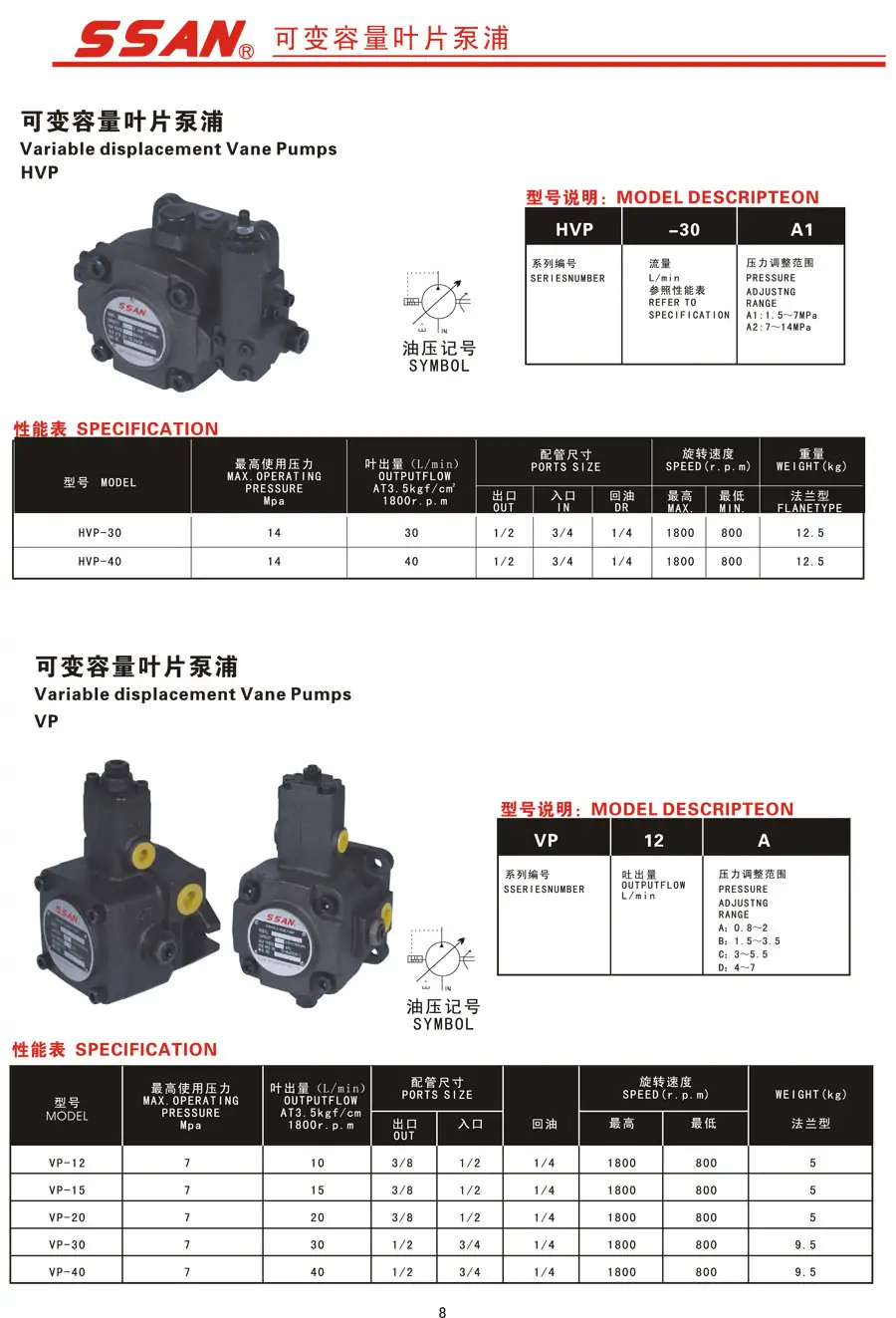 SSAN上研高压叶片泵HVP-F30-140 HVP-F20-140 HVP-F40-14