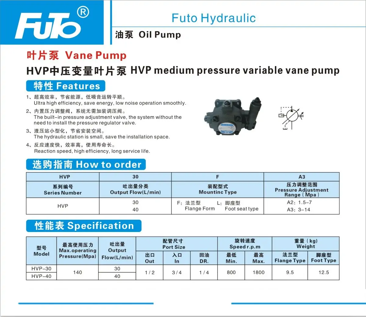 FUTO叶片泵PV2R1-14/17/19/23/25/28/31-FR低噪音油泵PV2R2