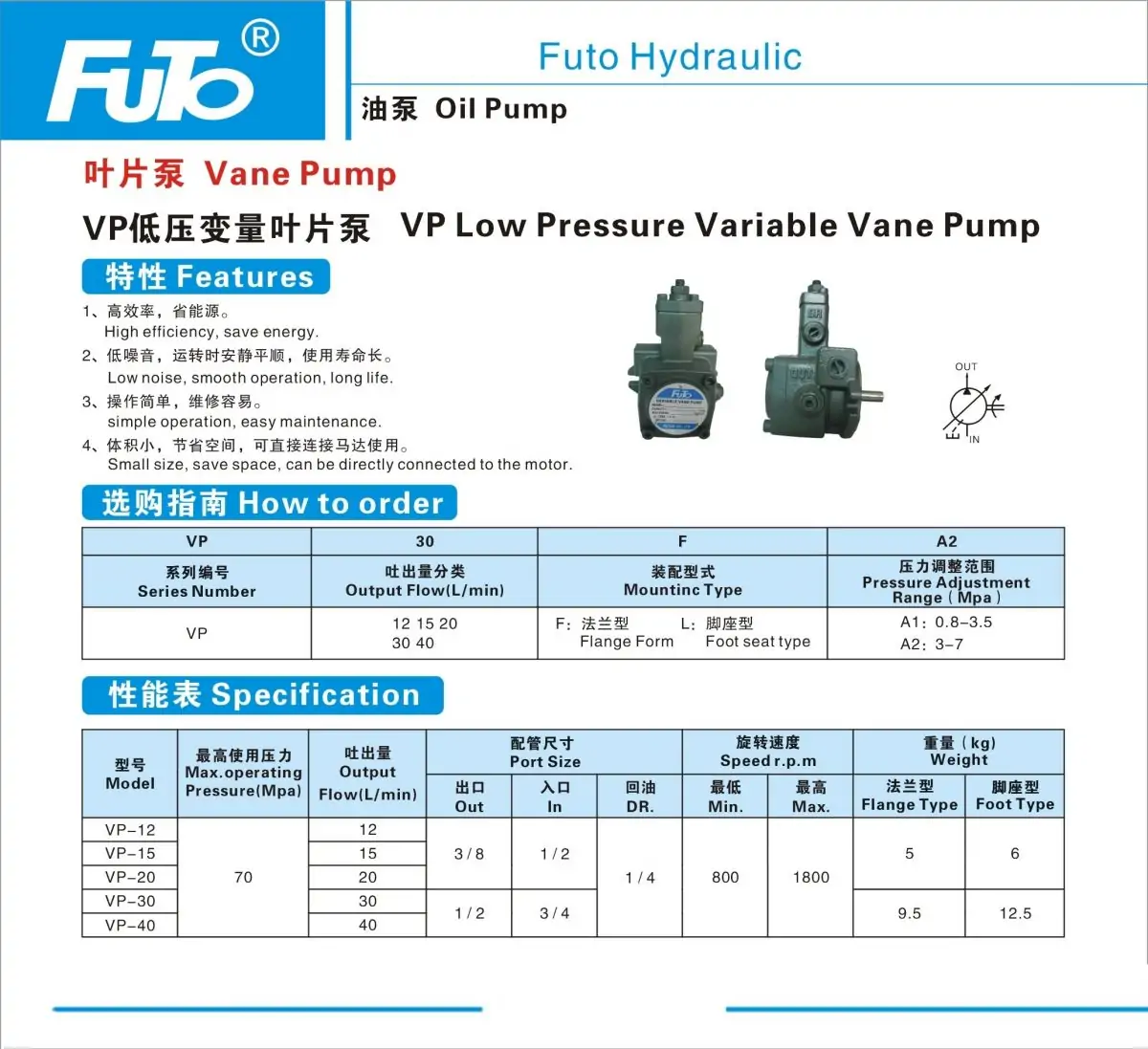 FUTO液压变量叶片泵HVP-15/20/30/40-FA3平键花键油泵