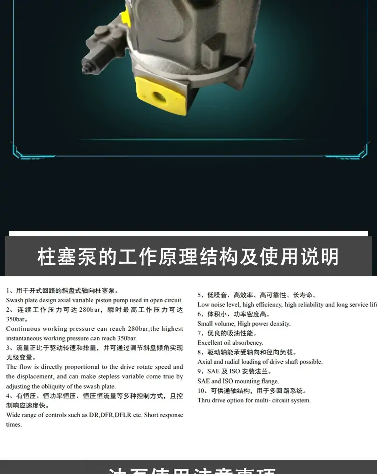 - 控制形式:标配恒功率、恒压、手动、液控等多种变量调节方式