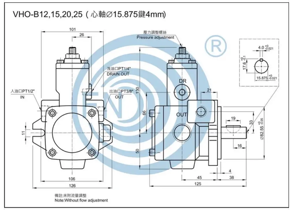 - 高强度铸铁整体泵体与前后端盖,刚性高、抗振耐压