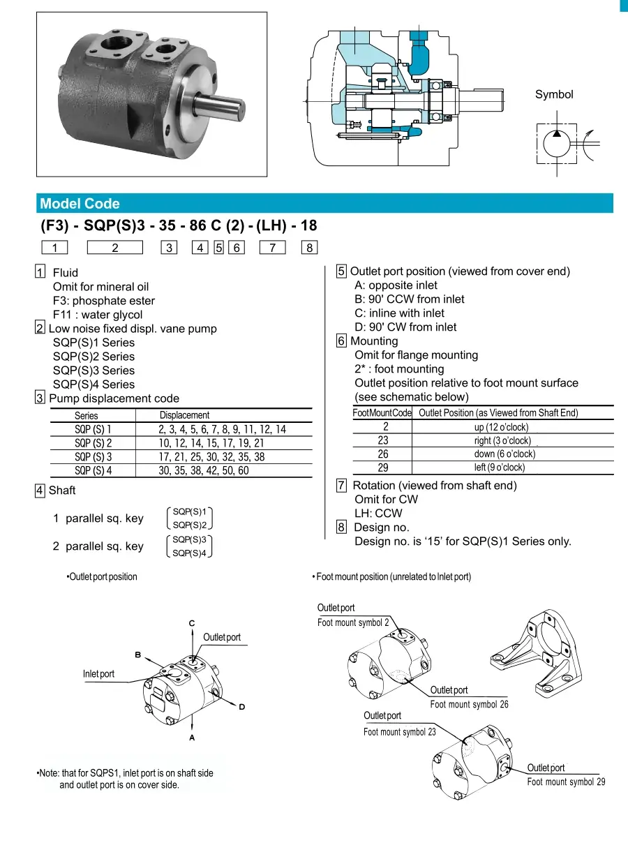 - CBC:控制方式 + 油口配置 → C:压力补偿控制;B:标准油口;C:顺时针旋转(轴端视)。